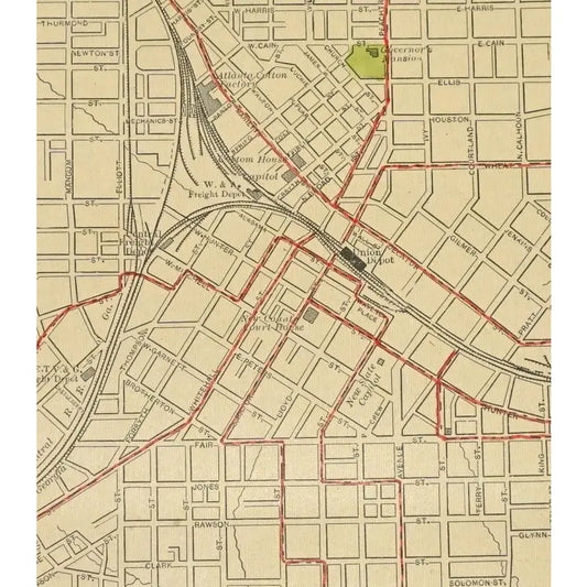 Original Antique Map of Atlanta, (Usa), C. 1886