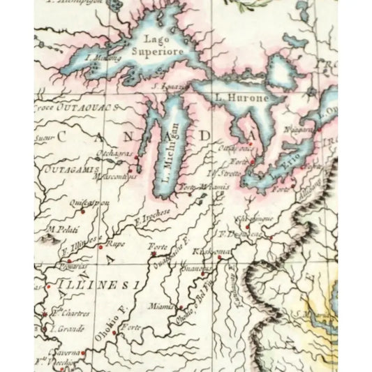 Original Antique Map of Florida, Louisiana and Lakes in Canada, C.1784