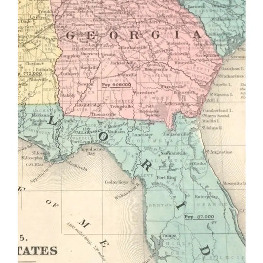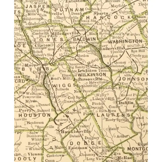 Original Antique Map of Georgia, (Usa) C. 1898
