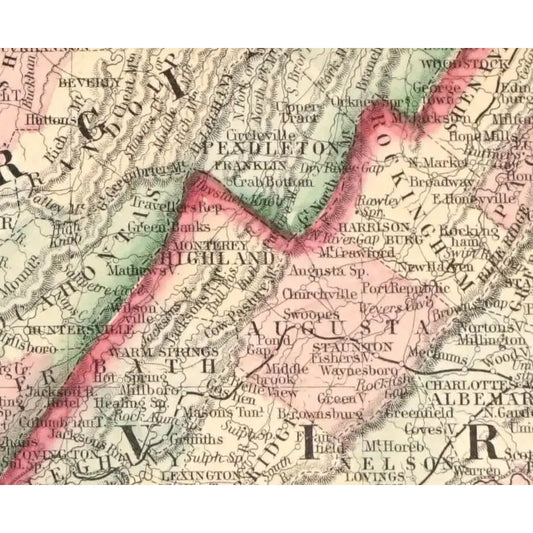 Original Antique Map of Virginia & West Virginia, (Usa), C.1882