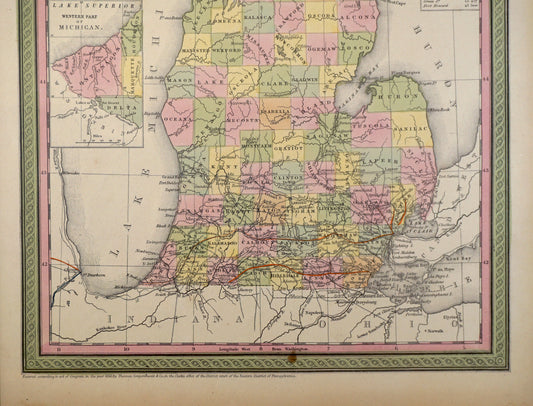 Original Antique Map of Michigan, 1850