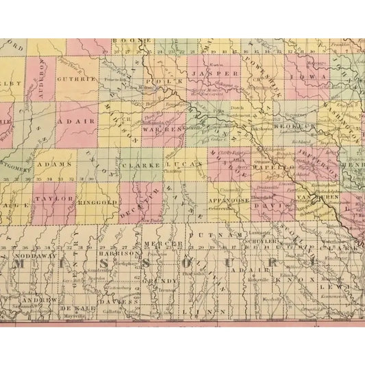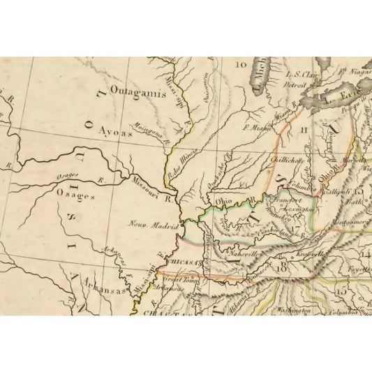 Original Antique Map of Iowa, USA, c.1800