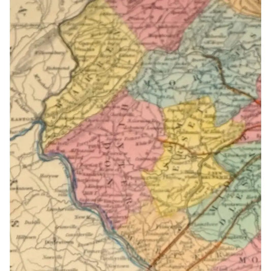 Original Antique Map of New Jersey, (Usa), C. 1850