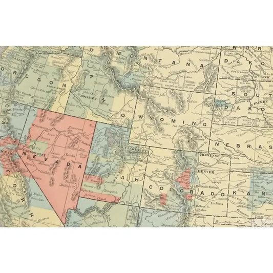 Original Antique Map of the United States, USA, c.1896