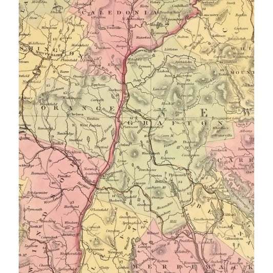 Original Antique Print New Hampshire & Vermont Map,(USA),C. 1850