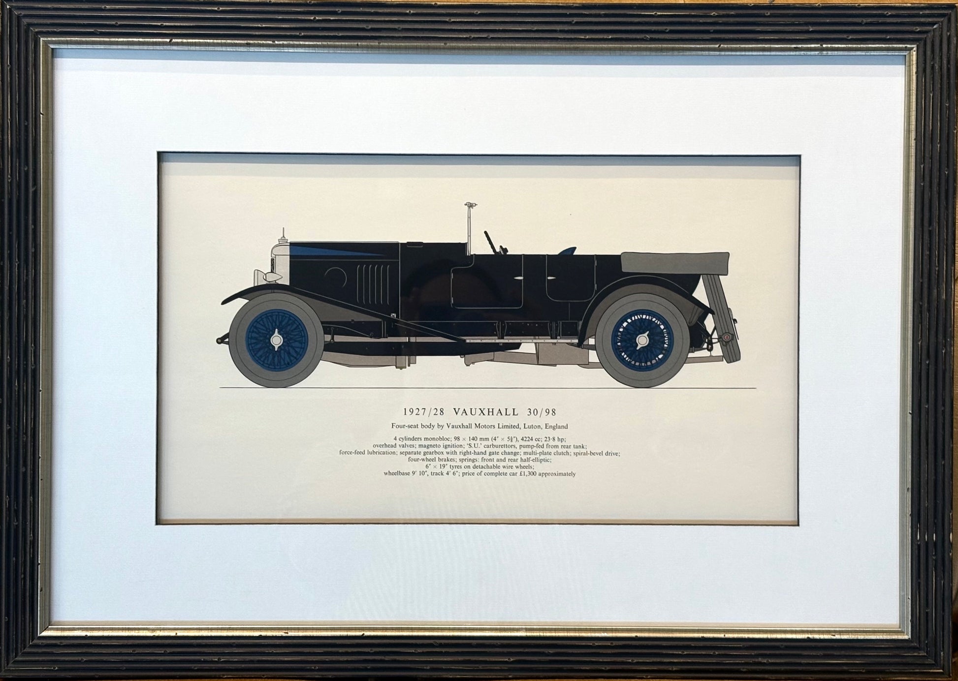 1927/28 Vauxhall, Vintage Sports Car Print, 1961, Framed