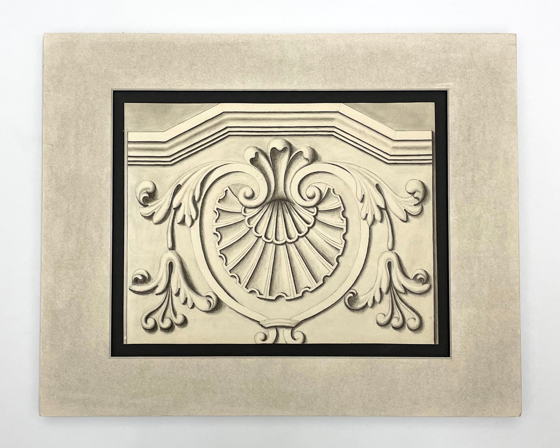 This pencil drawing highlights the subtle beauty of classical architectural features that may not be possible to see up close. Often up high on impressive buildings, these details have long been considered a work of art on their own by designers and masons. This work allows the designs to be appreciated as artwork outside of the architectural context.
