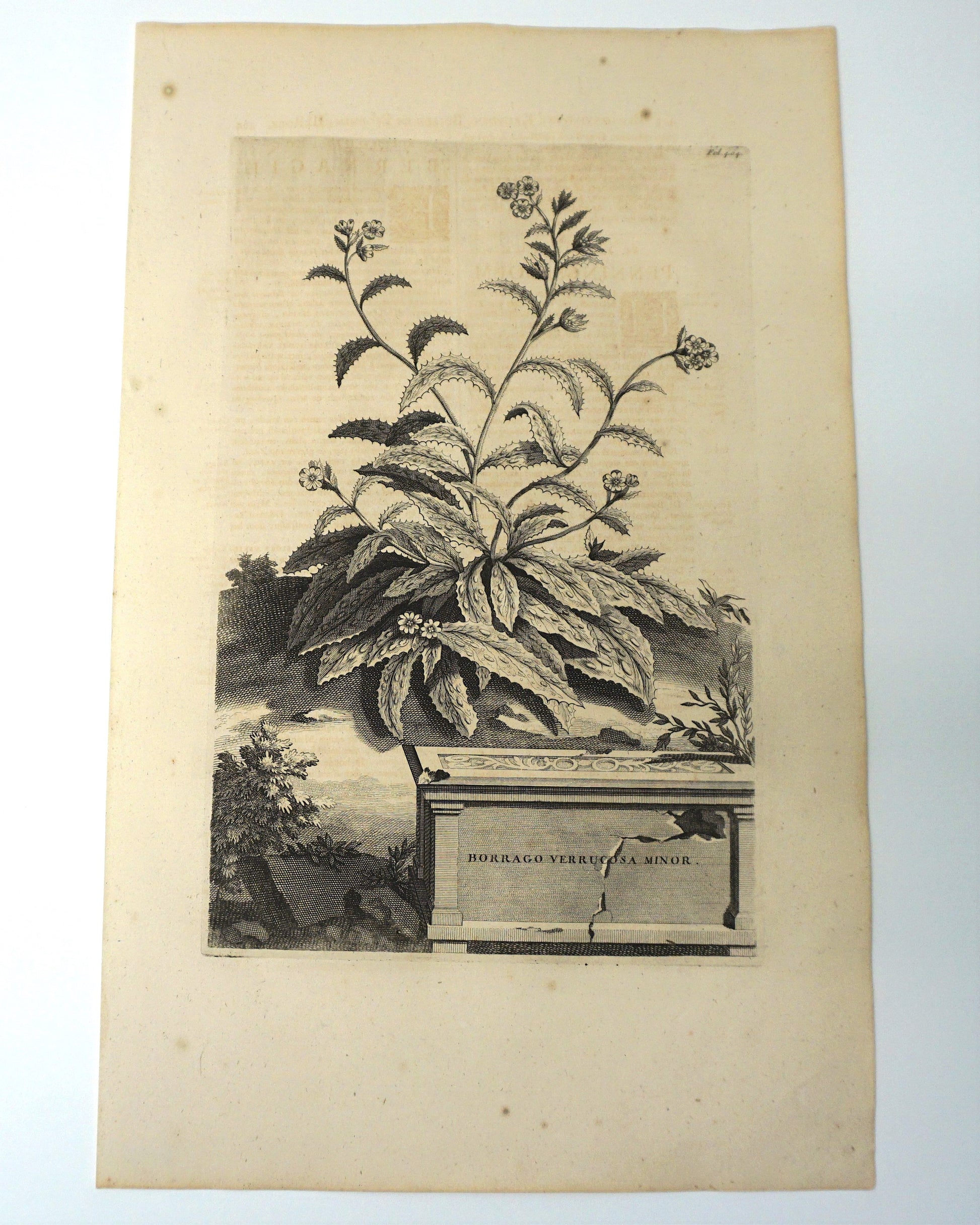 Etching Engraving of Borrago Verrucosa Minor, Abraham Munting, 1696