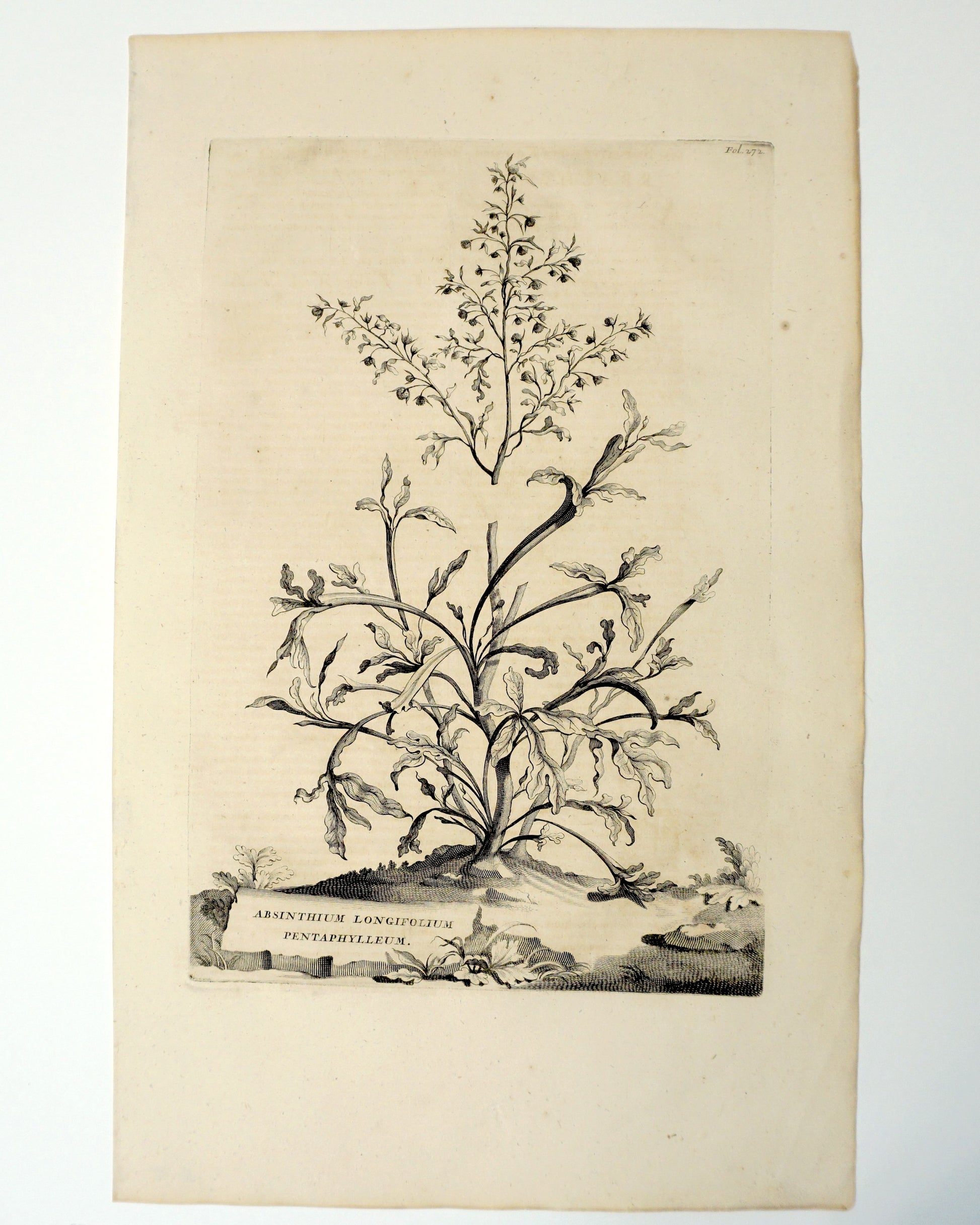 Etching Engraving of Absinthium Longifolium Pentaphylleum, Abraham Munting, 1696