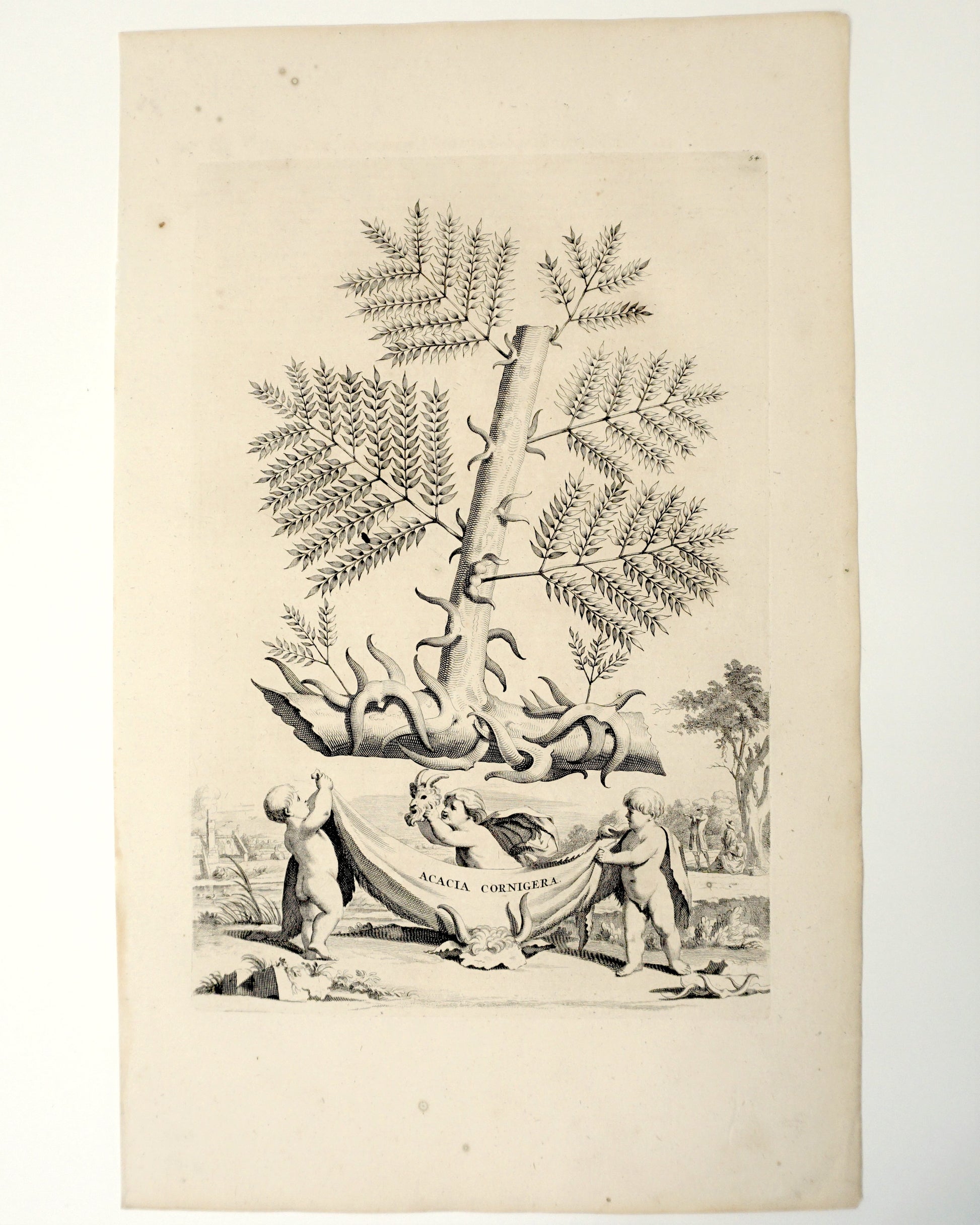 Etching Engraving of Acacia Cornigera, Abraham Munting, 1696