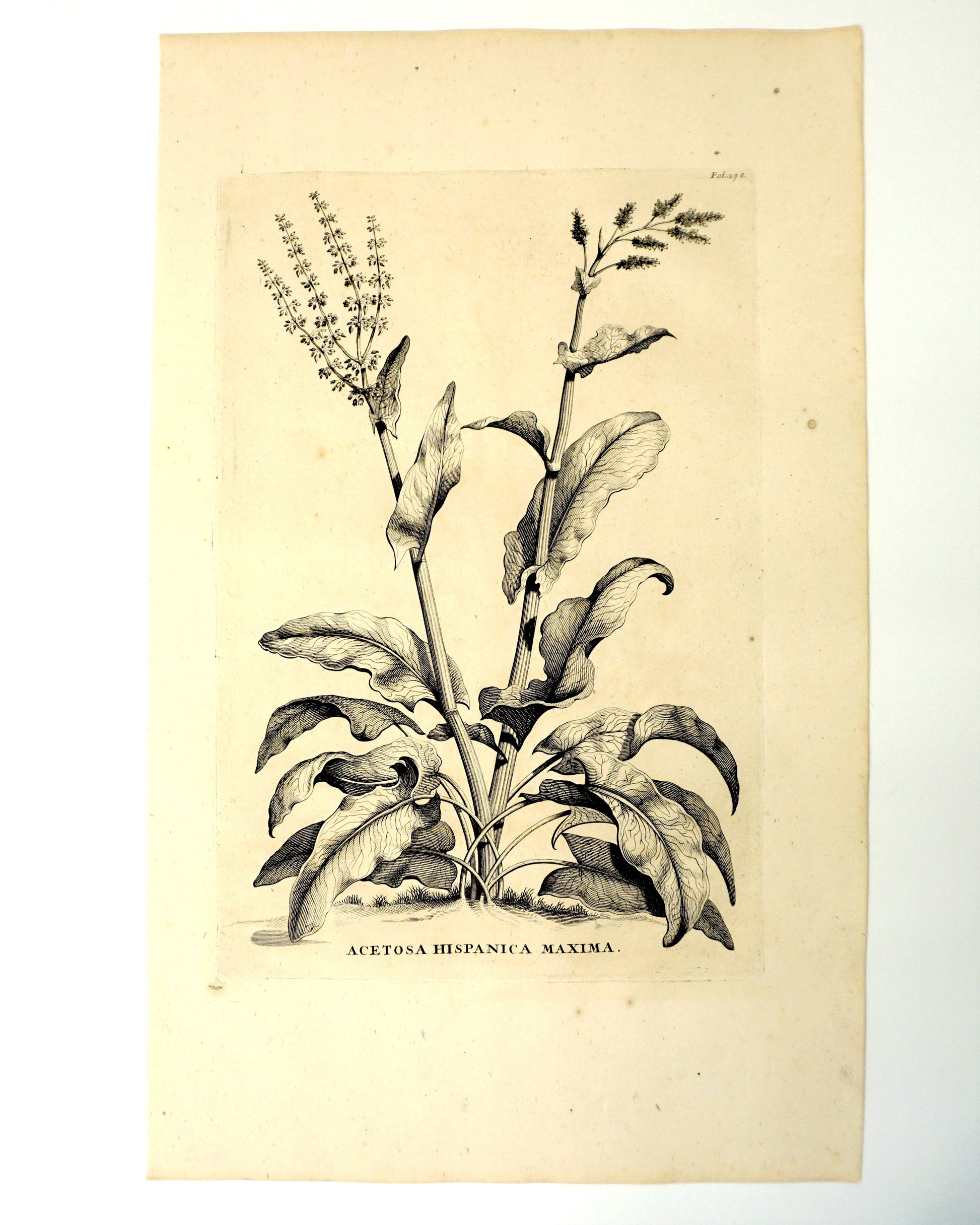 Etching Engraving of Acetosa Hispanica Maxima, Abraham Munting, 1696