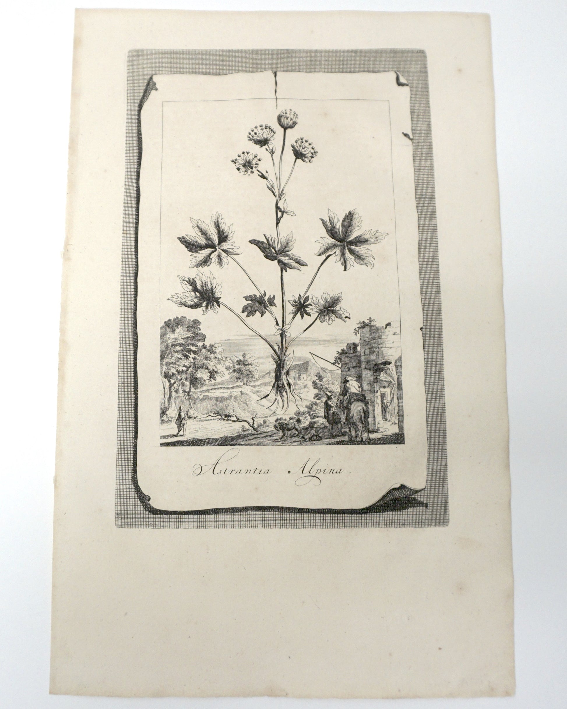 Etching Engraving of Astrantia Alpina, Abraham Munting, 1696