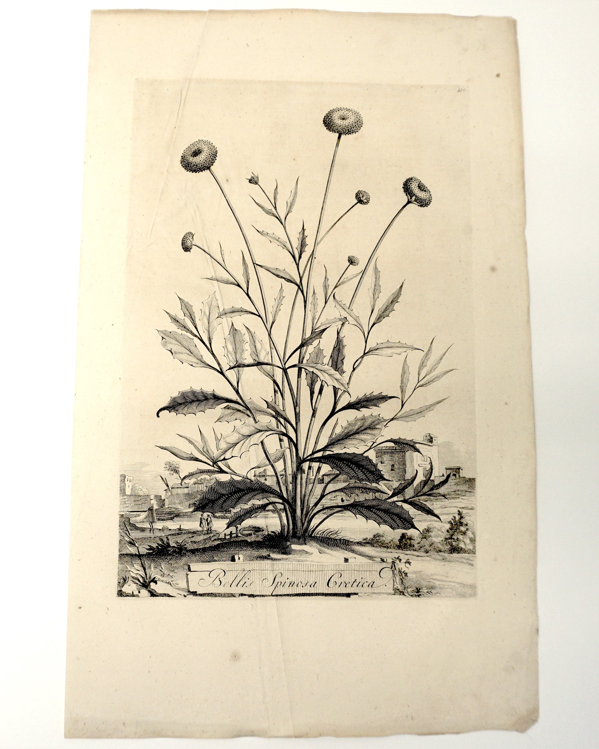 Etching Engraving of Bellis Spinosa Cretica, Abraham Munting, 1696