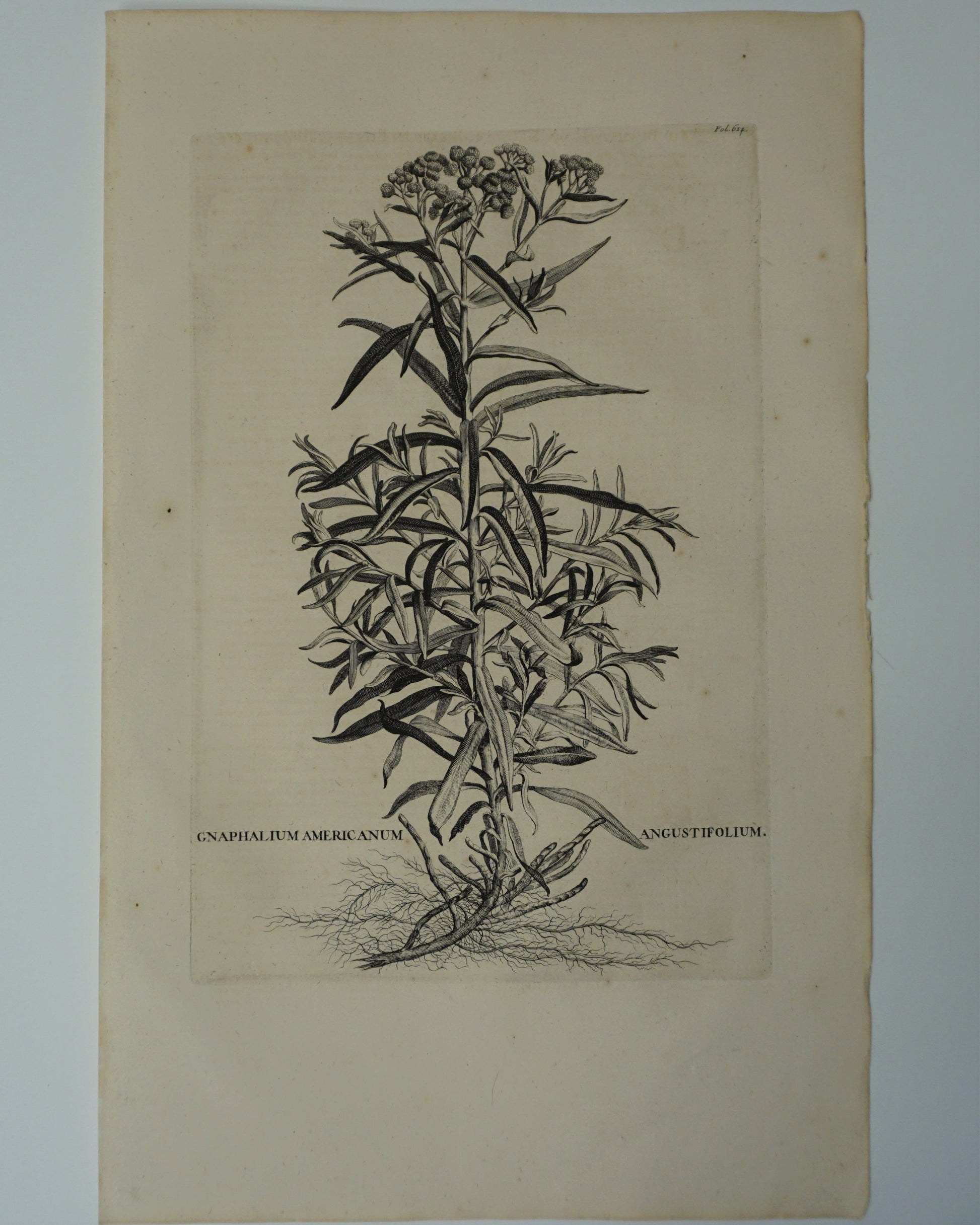 Etching Engraving of Gnaphalium Americanum Angustifolium, Abraham Munting, 1696