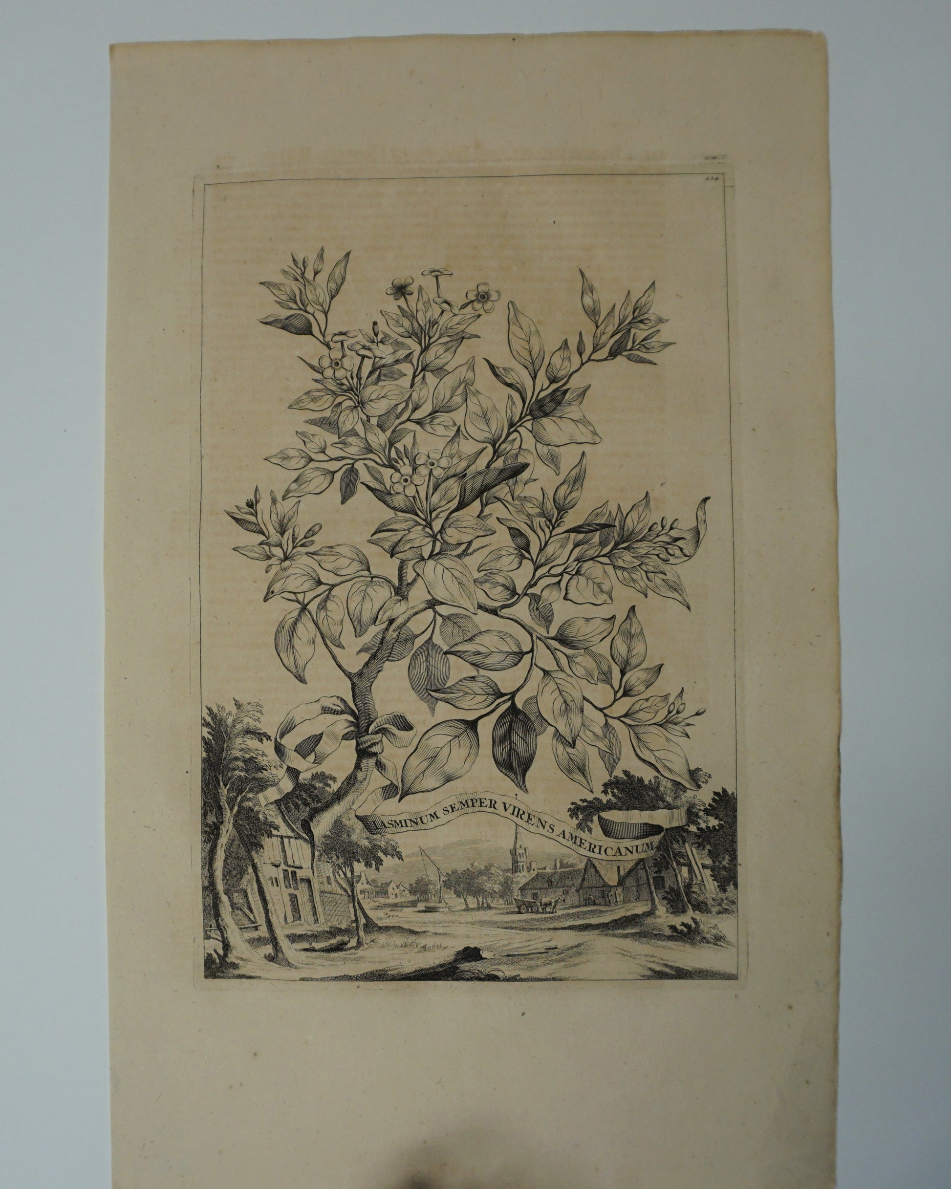 Etching Engraving of Iasminum Semper Virens Americanum, Abraham Munting, 1696