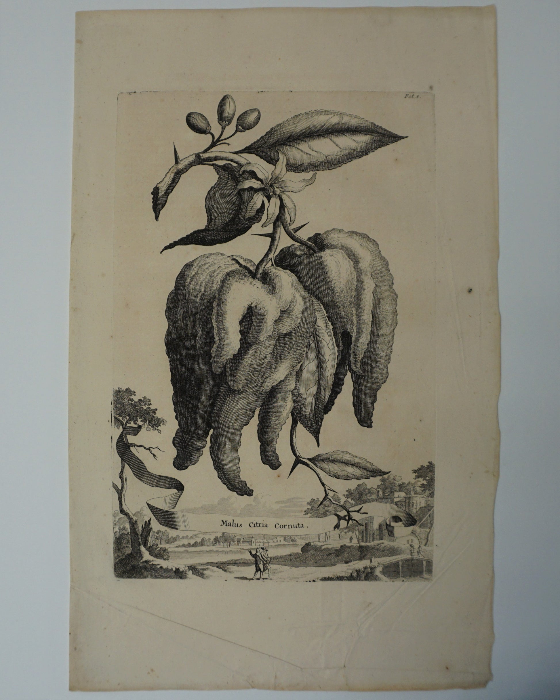 Etching Engraving of Malus Citria Cornuta, Abraham Munting, 1696