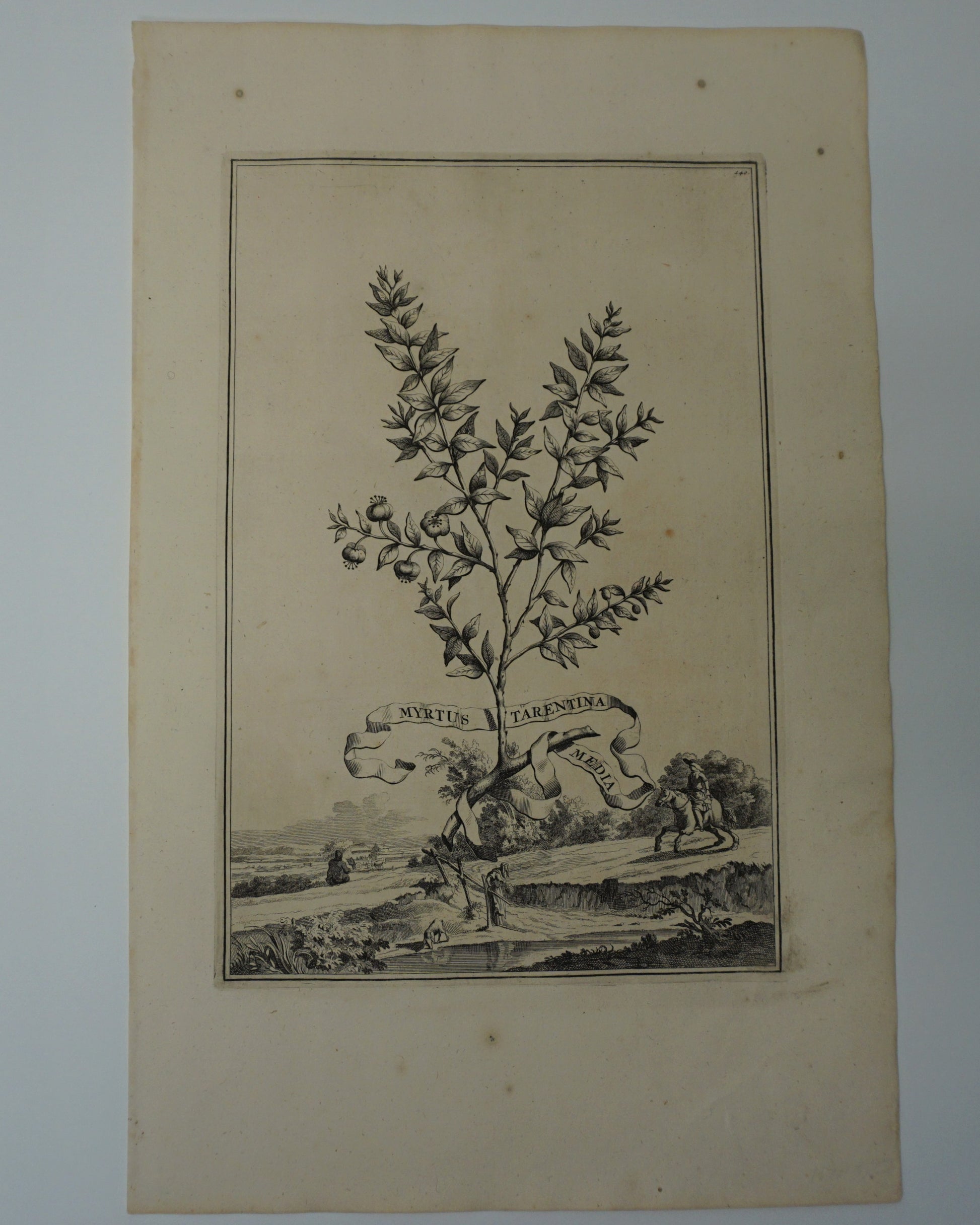 Etching Engraving of Myrtus Tarentina Media, Abraham Munting, 1696