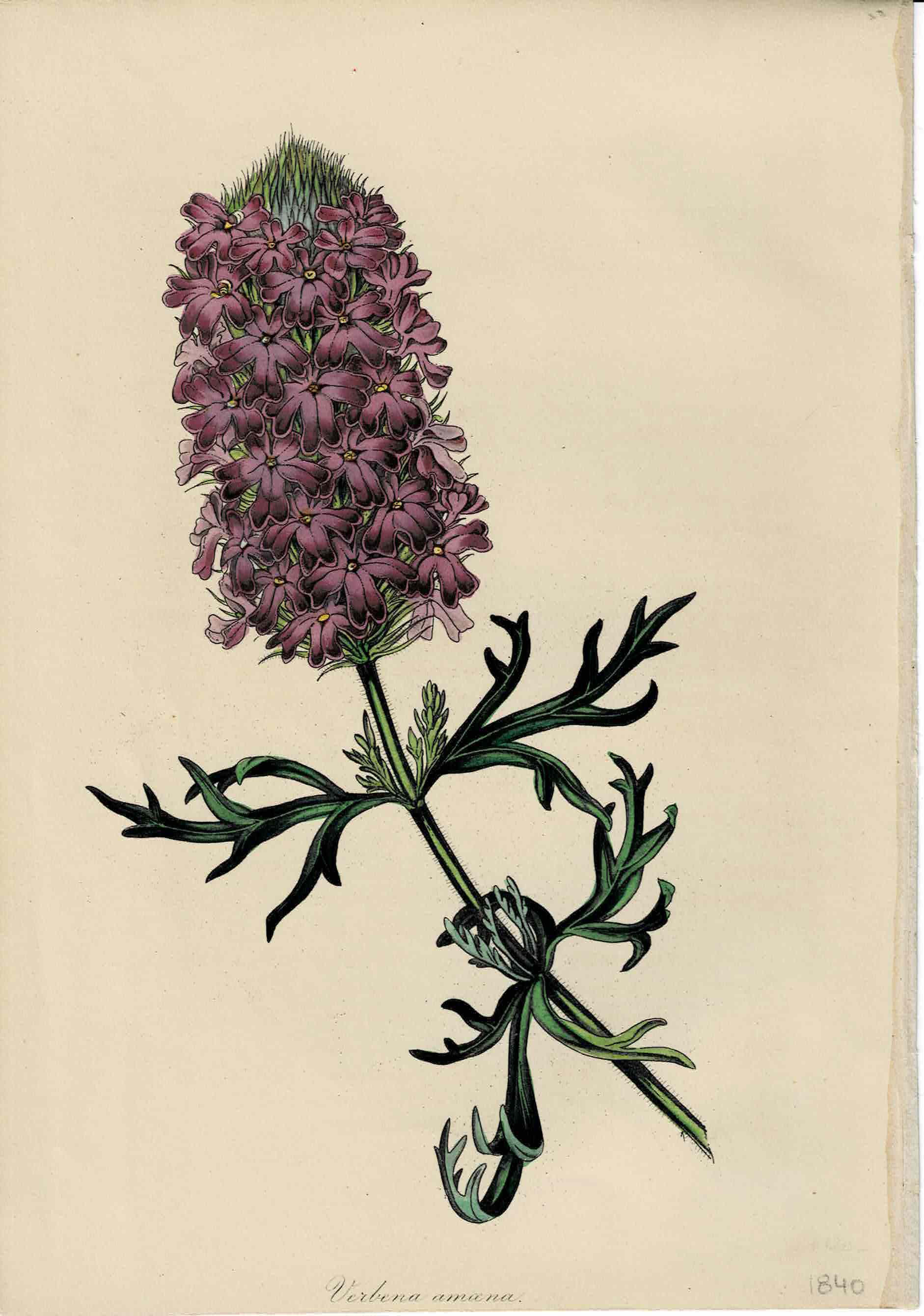 Hand-colored Botanical, Verbena Amana, c. 1840