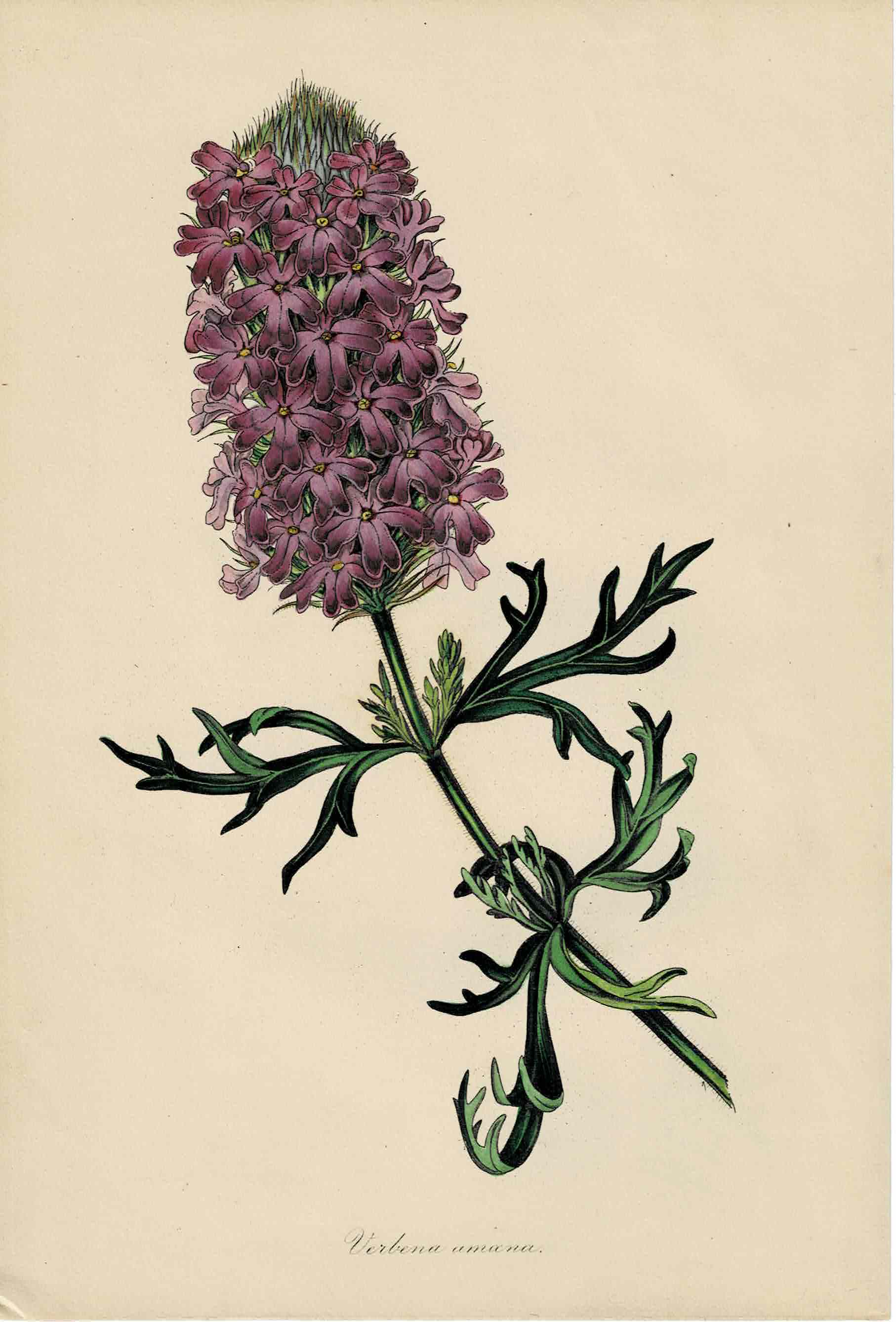 Hand-colored Botanical, Verbena Amana, c. mid-1800s