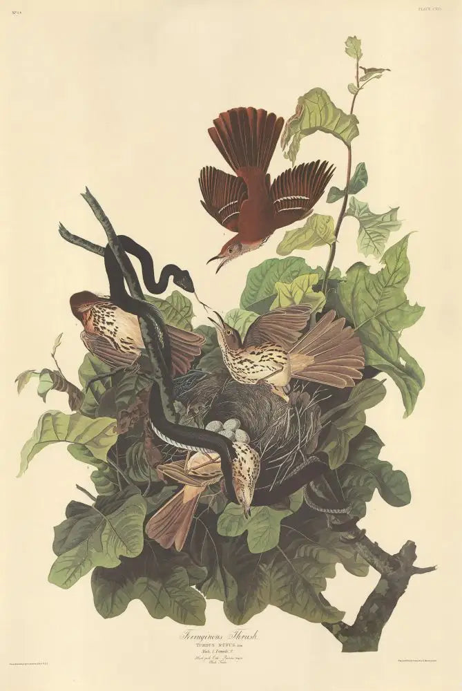 John James Audubon Amsterdam Ed.Ferruginous Thrush Print Lithograph Engraving 1972 Germany Birds of America Collection