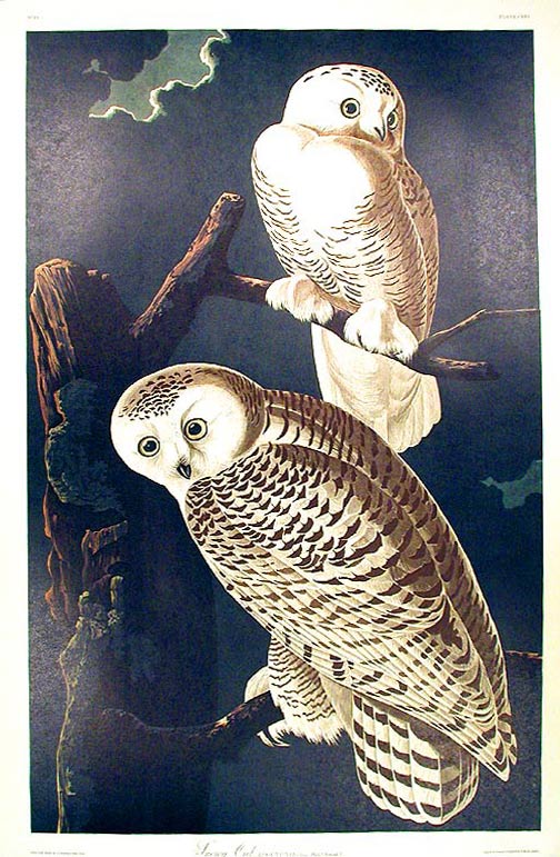 John James Audubon Amsterdam Ed.Snowy Owl Print Lithograph Engraving 1972 Germany Birds of America Collection