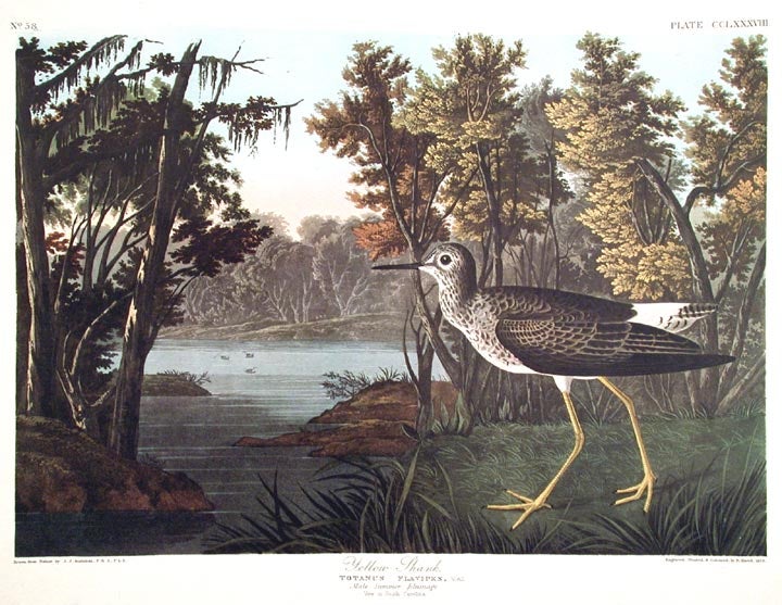 John James Audubon Amsterdam Ed.Yellow shank Print Lithograph Engraving 1972 Germany Birds of America Collection
