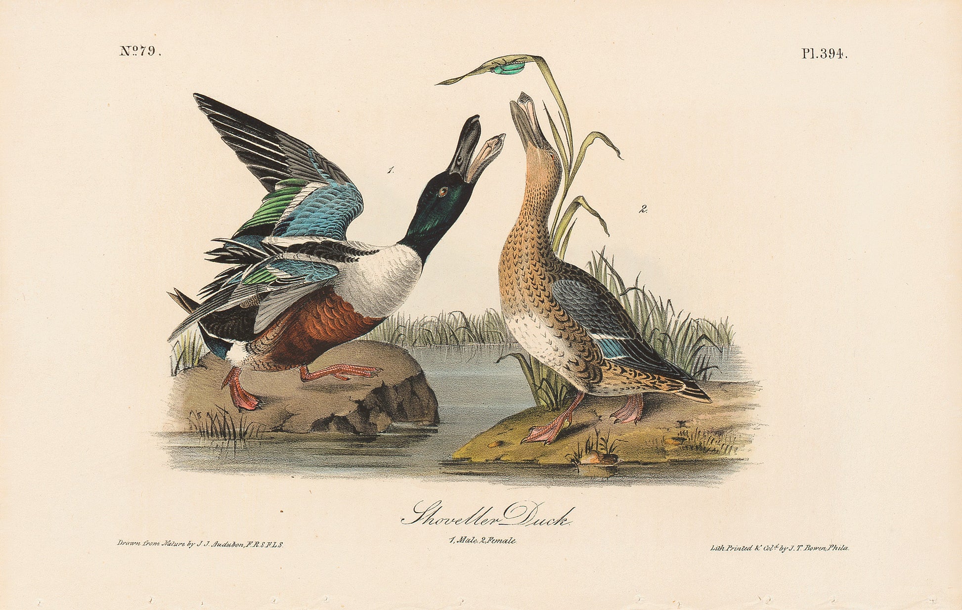 The Audubon Havell Ed. Pl 327, Shoveller Duck is an exquisite 19th-century, hand-colored engraving capturing this North American species.