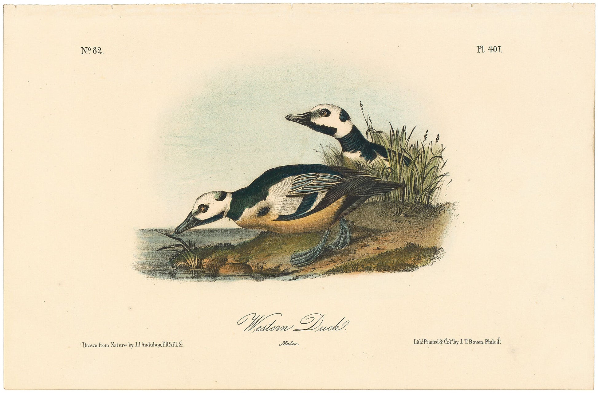 he Audubon 2nd Ed. Octavo Pl. 407 Western Duck captures Audubon’s seminal imagery on a convenient 10 ¼” × 6 ½” scale.