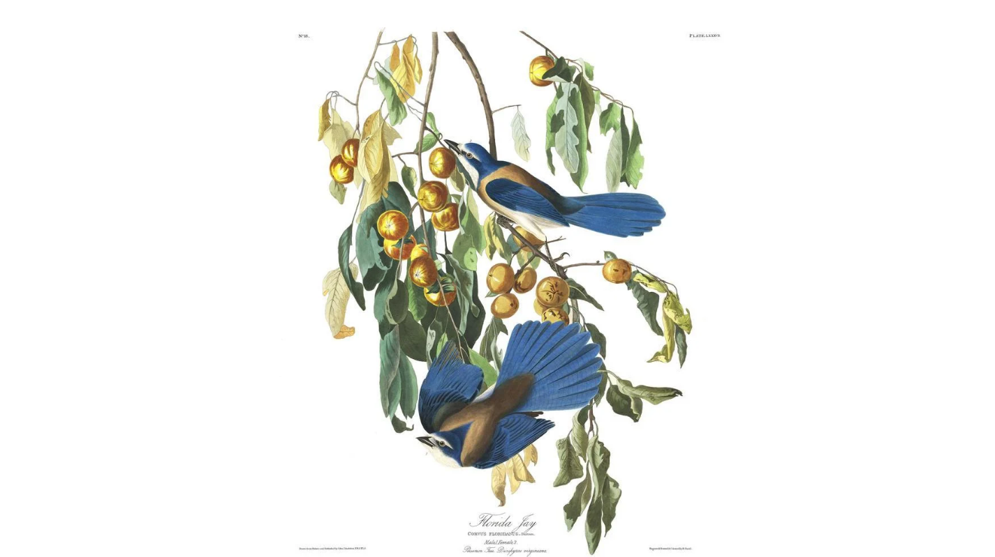 John James AudubonLeipzig Ed.Florida Jay Print Lithograph Engraving 1973 Germany Birds of America Collection