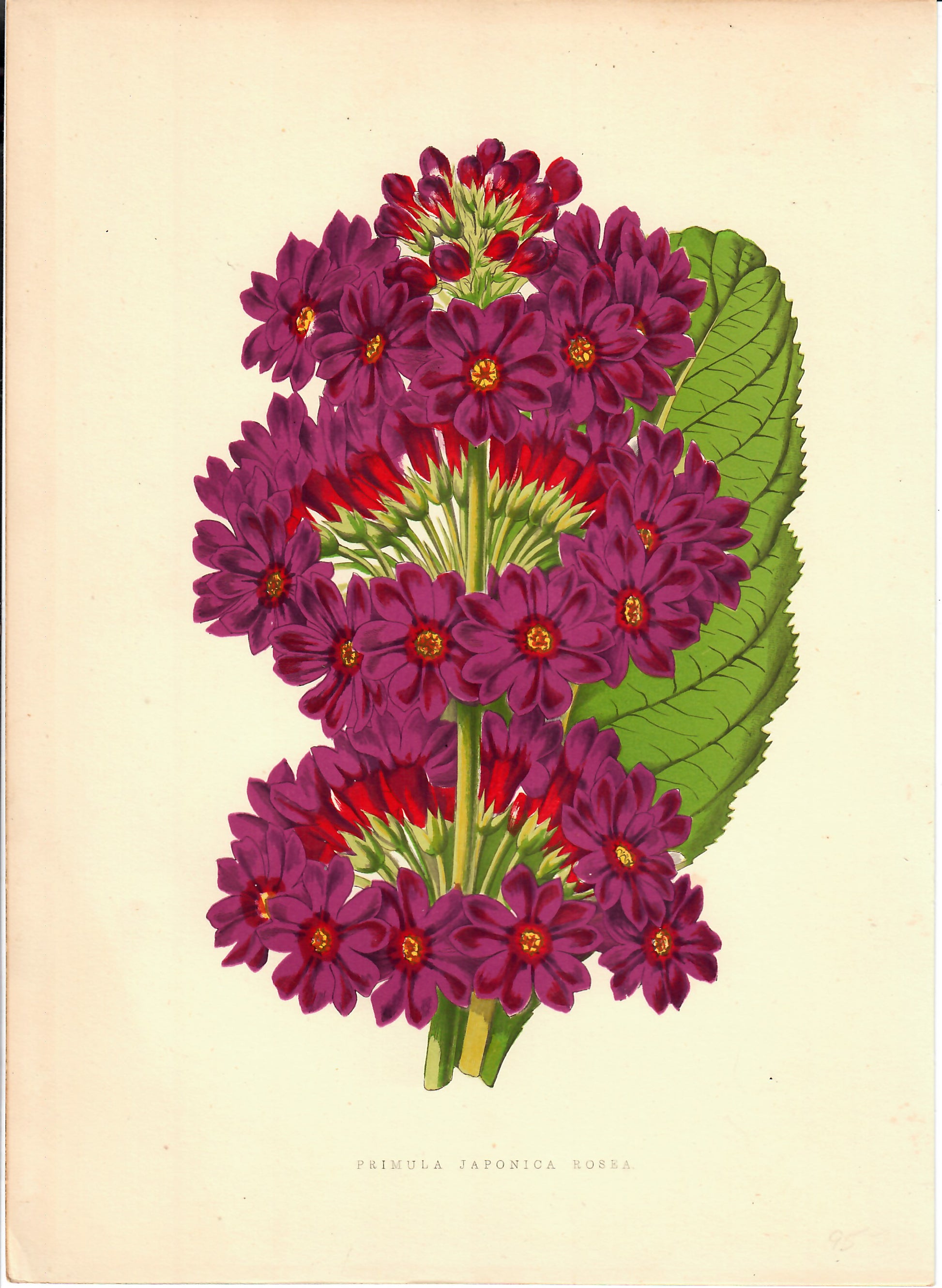 Magenta Hand-Colored Botanical. Primula Japonica Rosea, c. mid-1800s