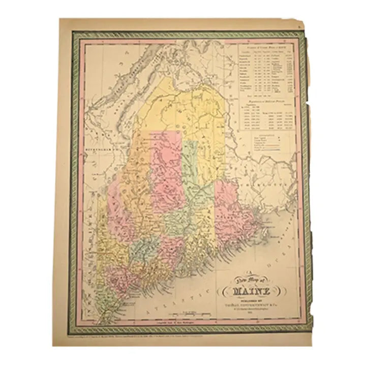 This map depicts the cities, counties, regions, railroads, routes, natural landscapes, bodies of water, and the surrounding states around the state.