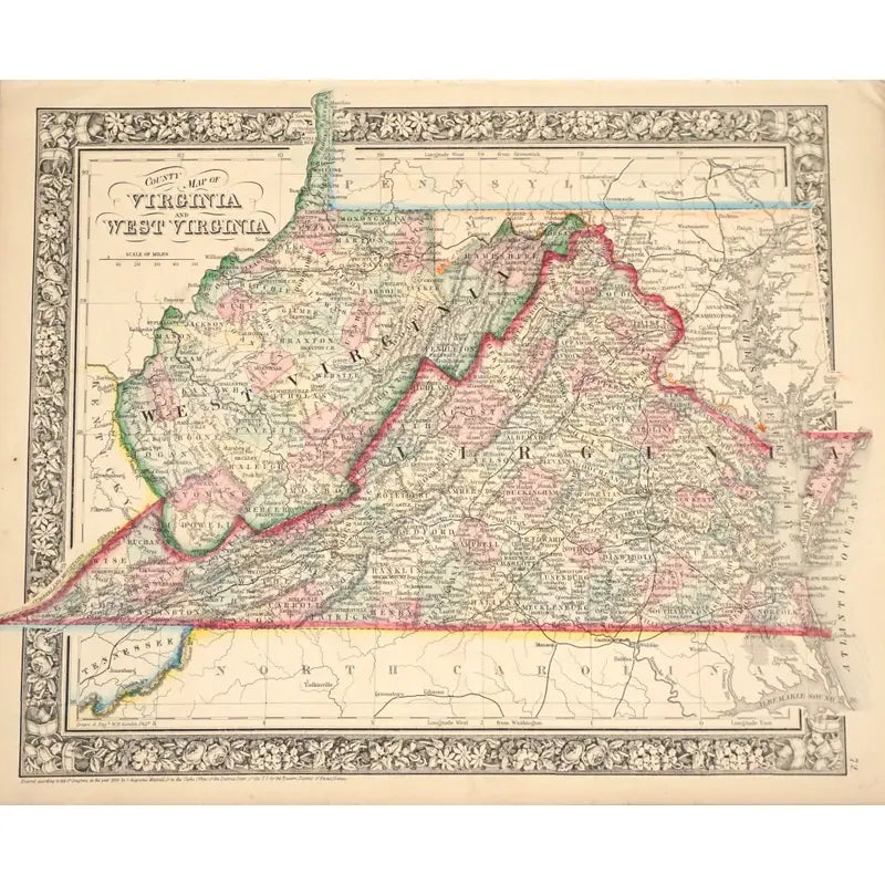 Original Antique Map of Virginia & West Virginia, (Usa), C.1882