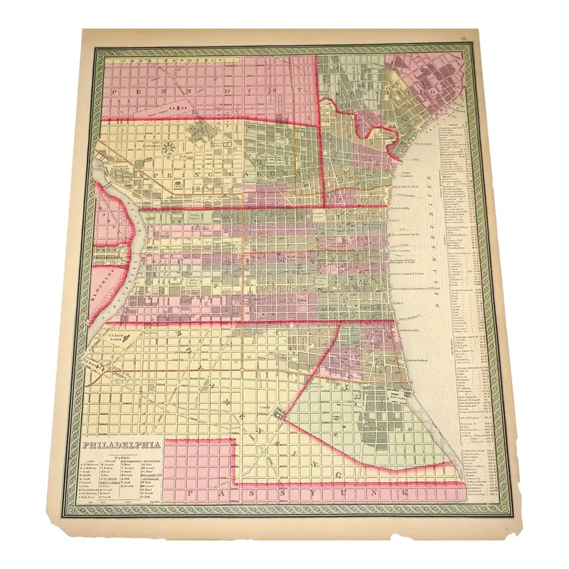 The unique map showcases the major cities, regions, counties, landscapes of this state. The map also has an index on the right side and displays the Delaware River.