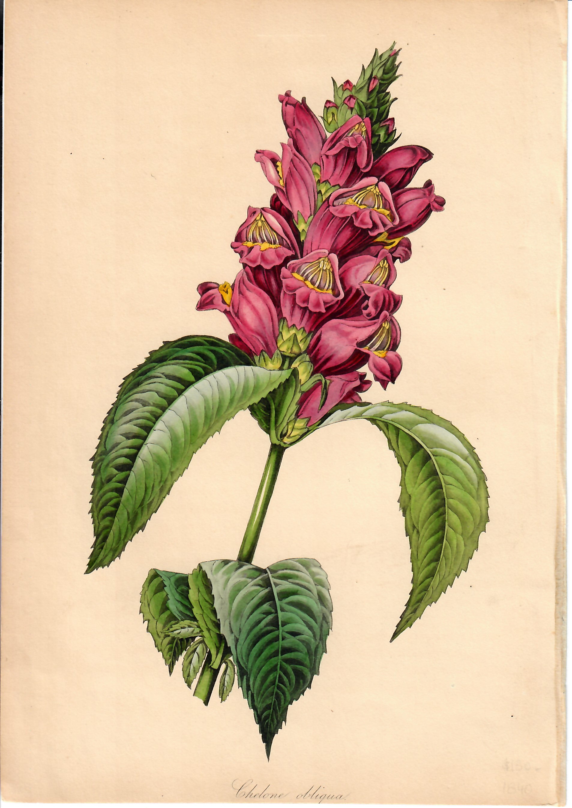Pink Hand-Colored Botanical, Chelone Aligua, 1840