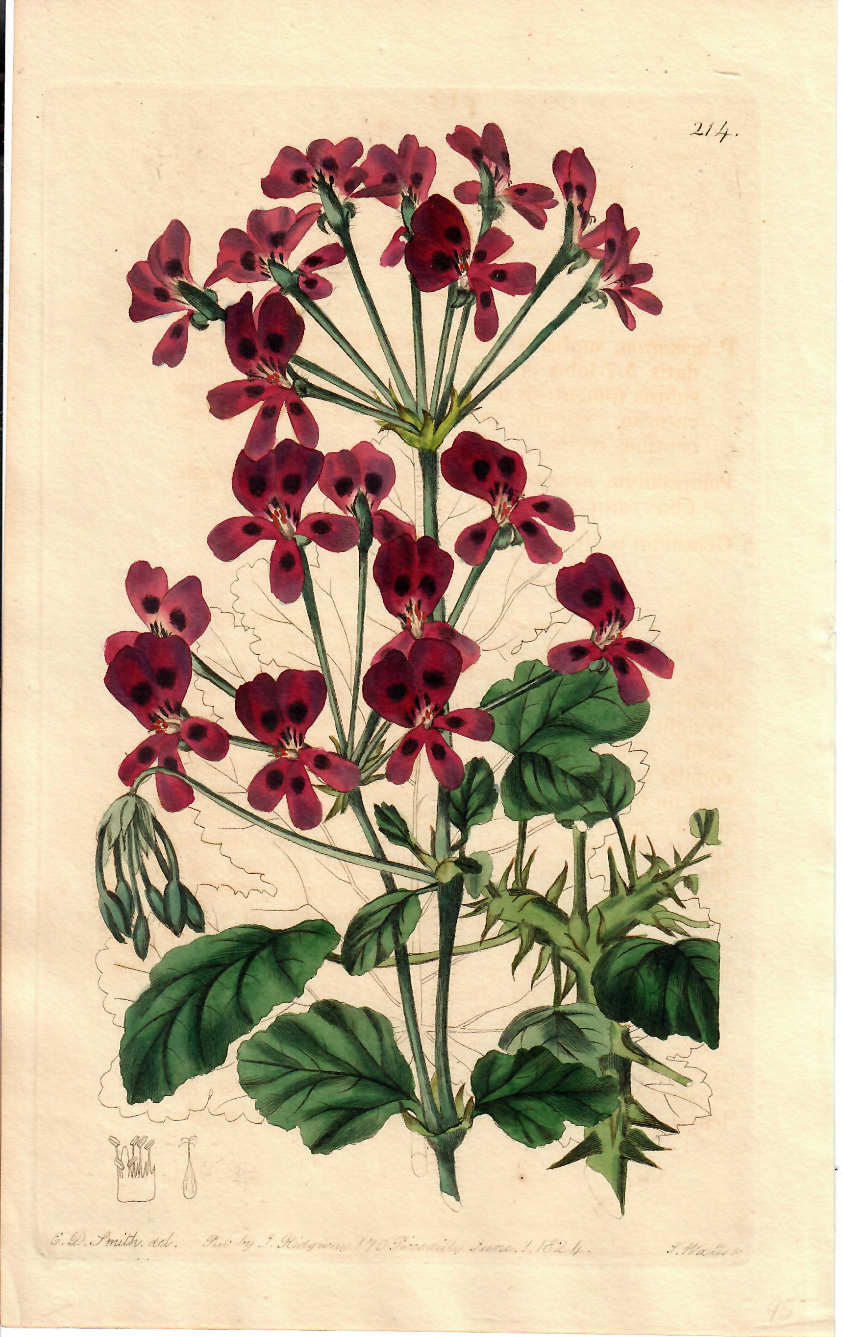 Pink Hand-Colored Botanical, E.D. Smith, 1824