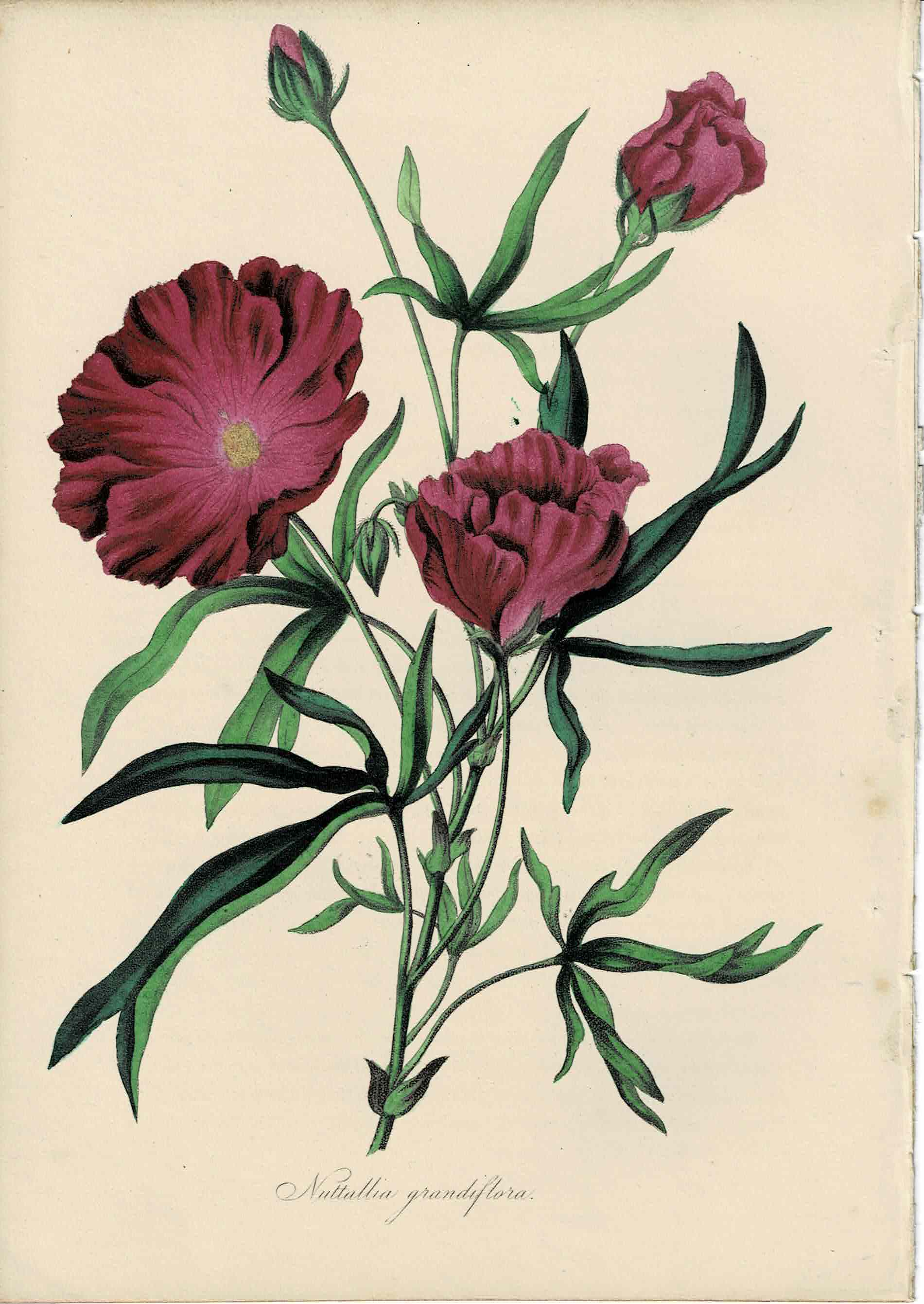 Pink Hand-colored Botanical, Nultallia Grandiflora, c. mid-1800s