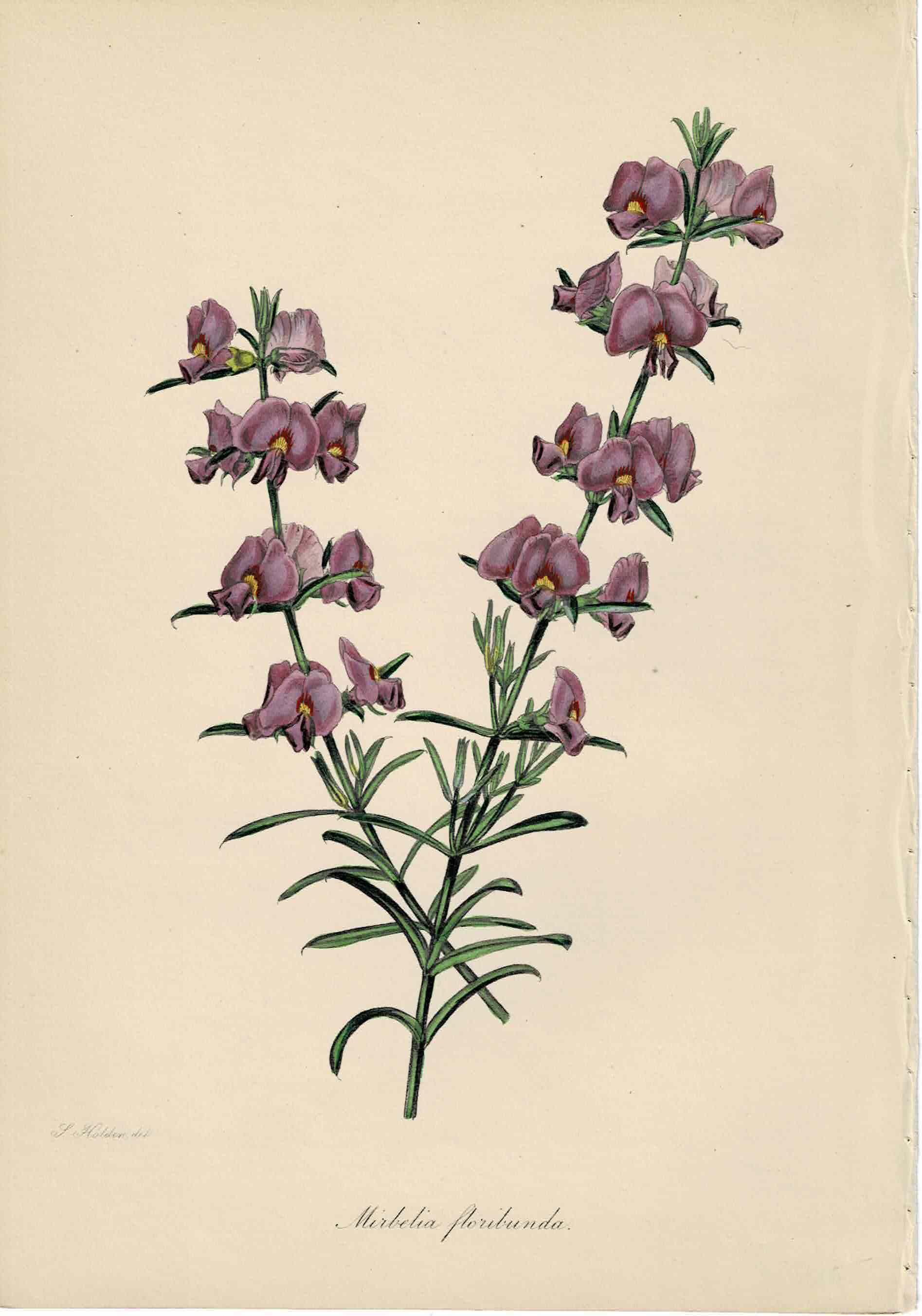 Purple Hand-Colored Botanical, Mirbelia Floribunda, c. mid-1800s