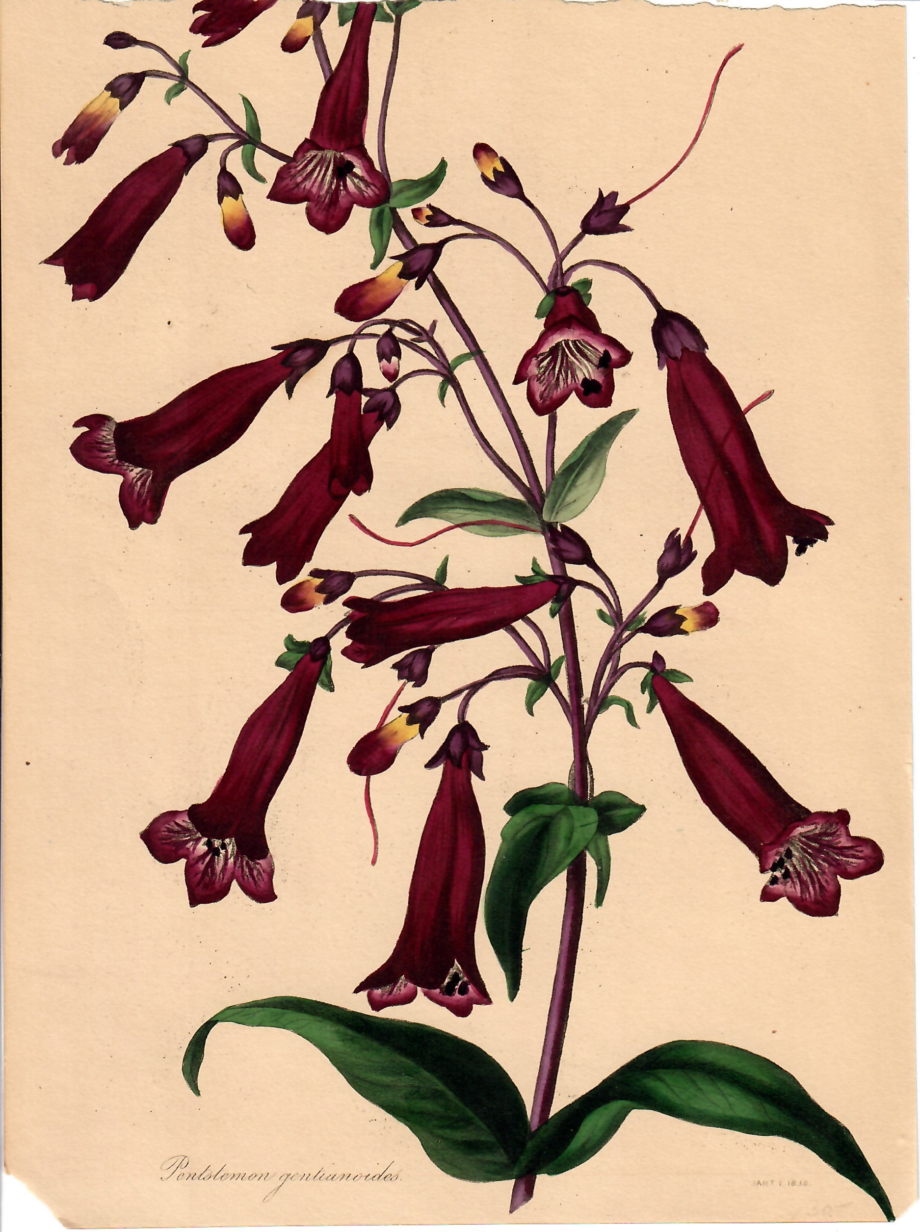 Purple Hand-Colored Botanical, Pentstemon Gentianoides, 1836