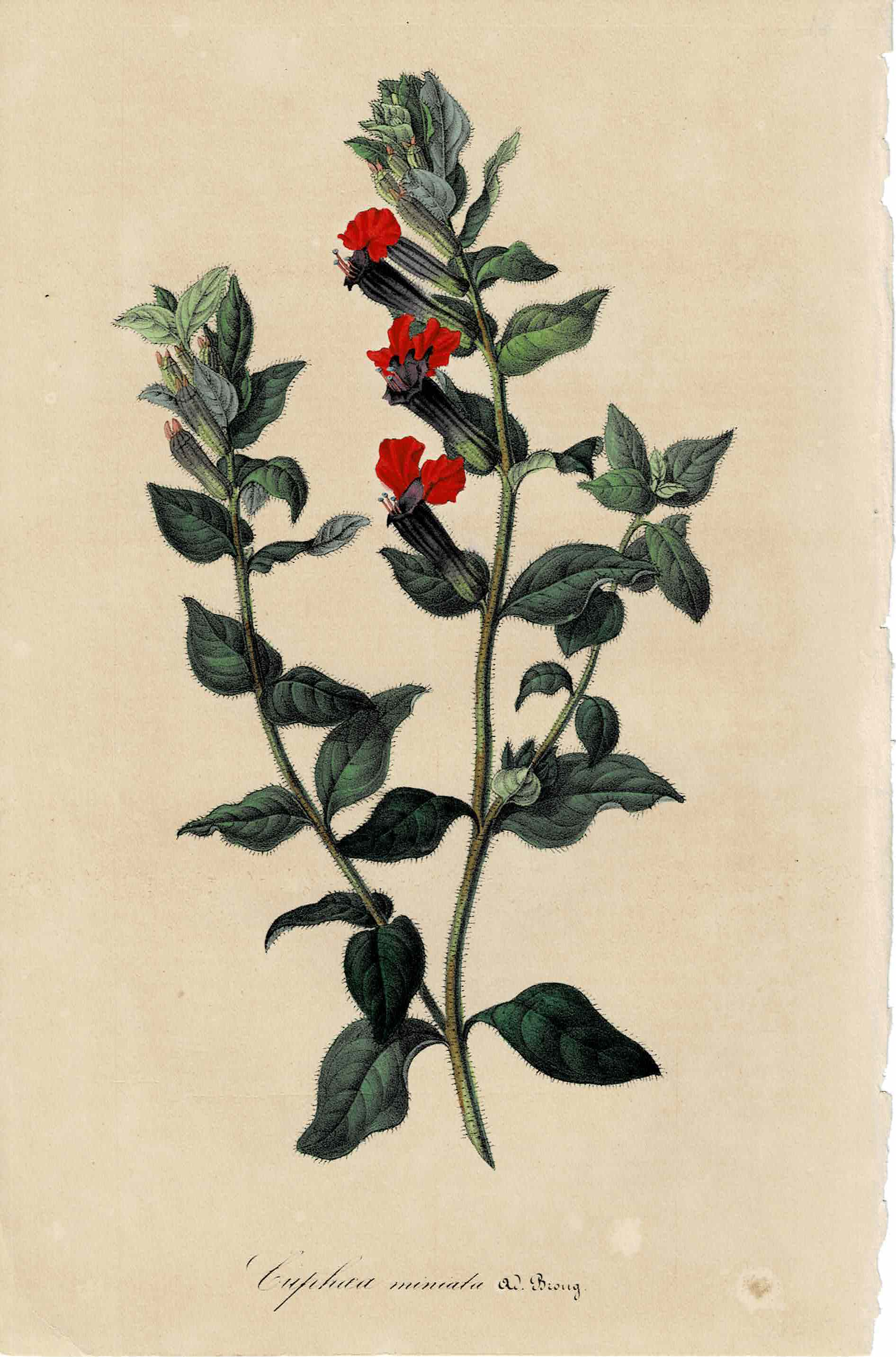 Red and Purple Botanical, Cupheia Miniata, c. mid-1800s