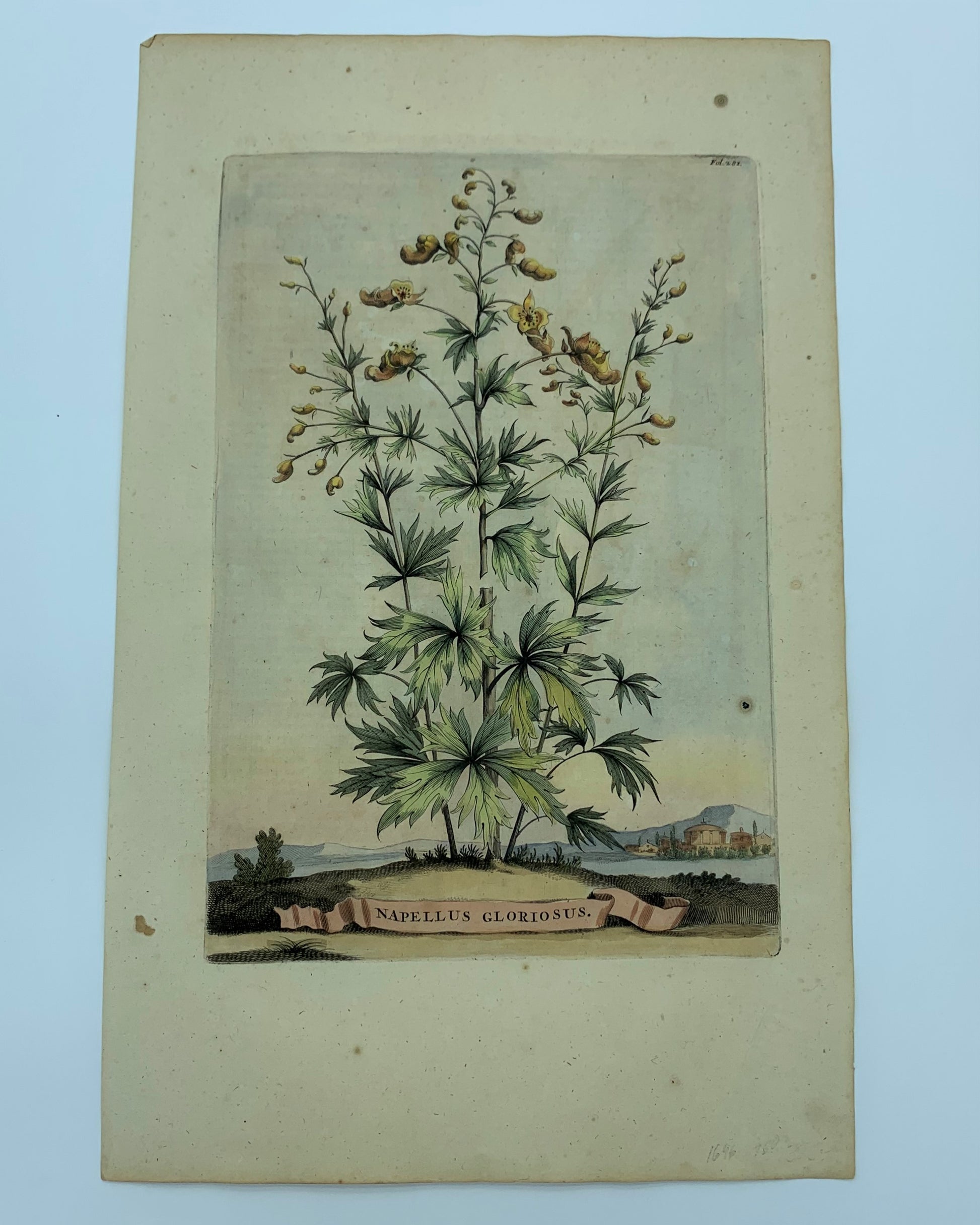 Abraham Munting (1626-1683) was the son of Henricus Munting, Dutch botanist, and a renowned botanical artist. Munting's best known work, Naawkeurige Beschryving Der Aardgewassen was published in 1696 after his death. Later, Waare Oeffening de Planten, was a recreated as an improved version of Munting earlier editions. His work was greatly enjoyed and beloved due to being unique and going beyond the traditional botanical illustrations of its era. In his drawings, plant species were depicted against a backgrounds of classic or pastoral landscapes, often floating in midair with little regard for perspective and relative sizes. Once Abraham Munting passed in 1683, his son Albert Munting took over the running of Hortus Botanicus Groninganus.